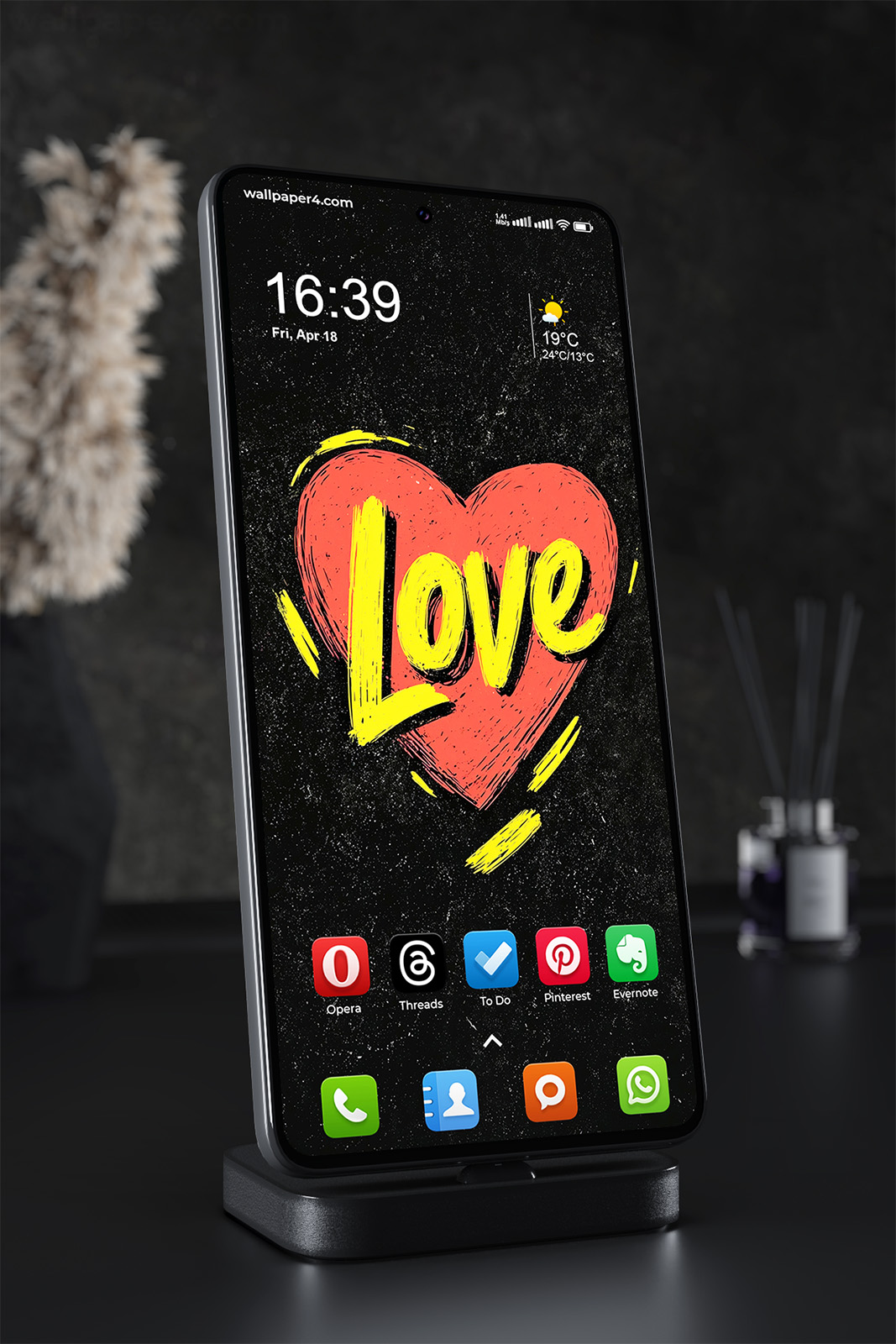 Perfect for those who enjoy minimalist yet emotional visuals, this artwork brings warmth and passion to your screen. It’s a simple reminder of love, connection, and positivity, making it a great choice for a stylish and meaningful mobile background.