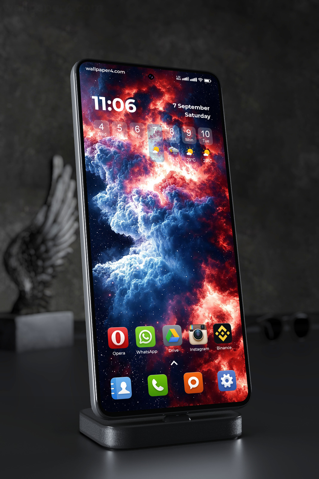 This wallpaper brings a mix of intensity and calm, blending vibrant colors with smooth gradients and detailed textures. Perfect for those who enjoy space aesthetics, abstract visuals, and a bold yet atmospheric look on their mobile screen.